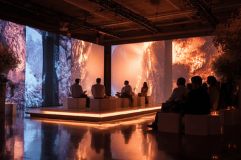 Similarly, our immersive installations now incorporate AI-driven personalisation that adapts environmental elements – lighting, sound, even spatial configuration – based on individual participant preferences detected through non-invasive sensors. The technology disappears; the human experience intensifies.